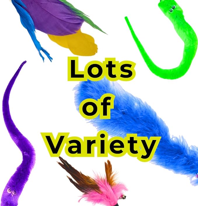 - Vibrant & Easy to Spot: Ever lost a cat toy under the couch, only to find it months later? With our vibrant, brightly colored attachments, you’ll never have to hunt for lost toys again. The bold colors not only capture your cat’s attention but also make it easy for you to spot them, ensuring playtime is always within reach.