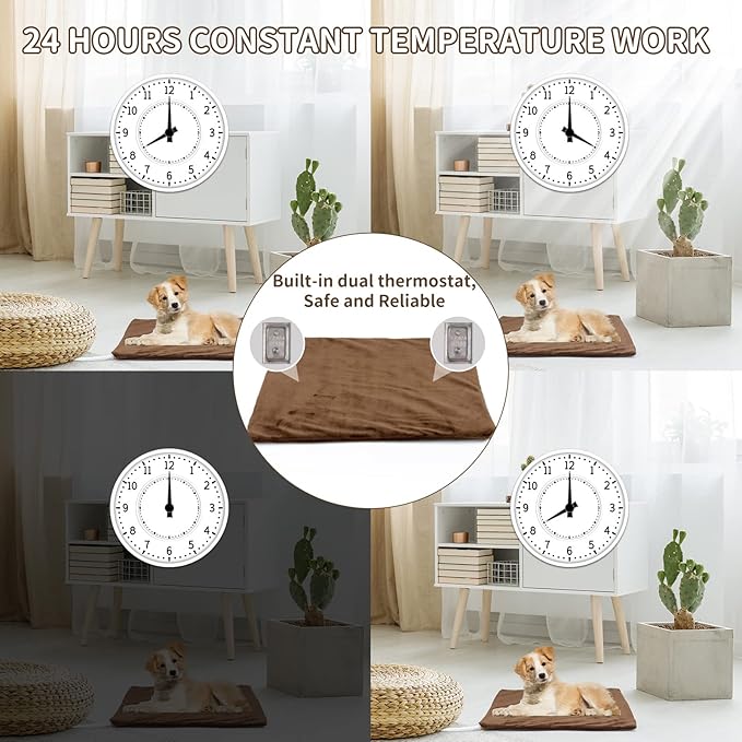 - 🐱【Auto constant temperature】NAMOTEK pet heating pads create the ideal temperature range of 95~108°F for cats and dogs recommended by veterinarians.Plug and play, Thermostatically controlled to automatically respond to temperature changes to warm to your pet's normal body temperature only when your pet is in the bed.
