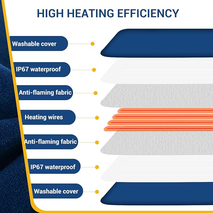 - Dog heating pad certified with UL, IP67 waterproof PVC inner surface, removable & washable polyester cover, anti-overheating, about 80" anti-bite spiral cable tube, you can always use it daily with confidence.
