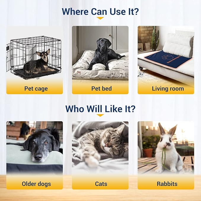 - 24" X 18" square pad for dogs, cats, chickens, rabbits, pet pigs, and other farms or wild animals. This size also great for cage, pet bed, sofa, etc, but not recommended for outdoor use. 1-year guarantee, if any issue with using this product, feel free to contact us, we will here for your satisfaction.