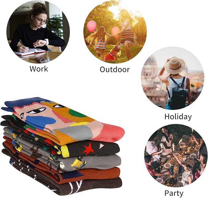 - 【Uniqe & Unusual Gifts】Who doesn't need or want a pair of colorful patterned socks rather than meaningless black or white socks? Our casual funny socks can be the right thing to give to mother, girlfriend, wife or colleagues on special days like Christmas or Valentine's Day, Halloween, Mather's Day, Children's Day or Thanksgiving!