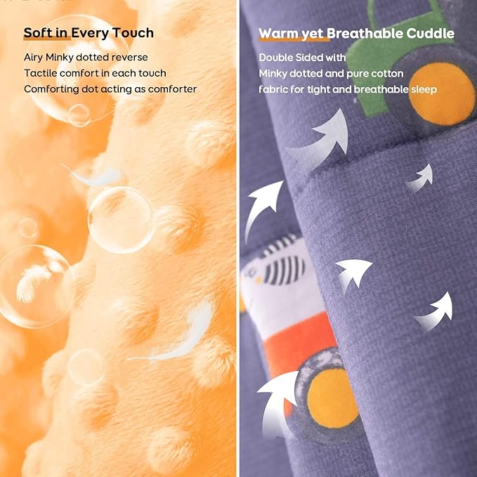 - Meticulously Designed for Added Comfort: The dual sided weighted blanket offers them tactile comfort to help them calm down and fall into sleep with the breathable cotton face keeping you dry and comfortable while the super soft minky dotted and skin-friendly reverse endowing extra sense of security. Suitable for all-season use