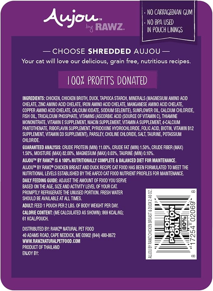 Rawz Aujou Chicken Breast & Duck Cat Food 8 Pouches 2.46 oz