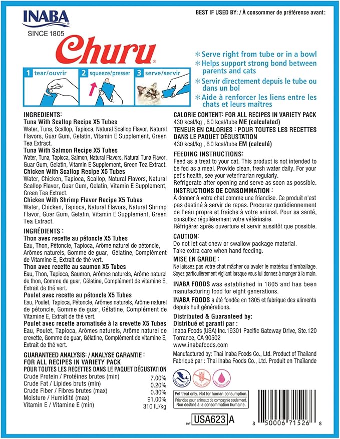 • MADE WITH WHOLESOME INGREDIENTS YOU CAN TRUST: Every Inaba product is made with yummy high-quality ingredients including farm-raised chicken and/or natural wild-caught tuna