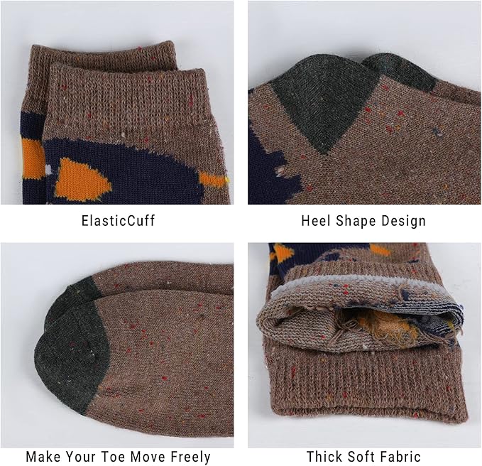 - 【Soft Material】5% wool, 65% cotton, 25% polyester, 5% spandex, our cute wool socks are very soft, breathable, long lasting and will keep your feet comfortable and warm. Make your feet feels like hugged with clouds. Keeping your feet warm and healthy during cold weather is important to your overall health, which is why we need soft, thick warm socks.