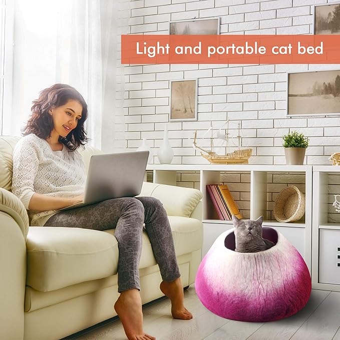 - MODERN DESIGN: Warm, cozy and durable cat bed for your lovely cat and special touch to home decor. Perfect for cats to play, nap, rest, relax and sleep inside or on top : This cat bed can be used as a cozy hideaway pod or flattened into a relaxing padded mat. You can use this felt cat cave anywhere in your house and outdoors.