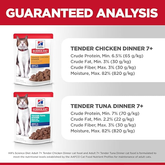 Hill's Science Diet Adult 7+, Senior Adult 7+ Premium Nutrition, Wet Cat Food, Variety Case: Chicken; Tuna Stew, 2.8 oz Pouch Variety Case, Case of 12