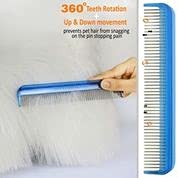 Pet comb with silky smooth rotating teeth for easy mat removal without pain to your pet (7" Sky Blue)