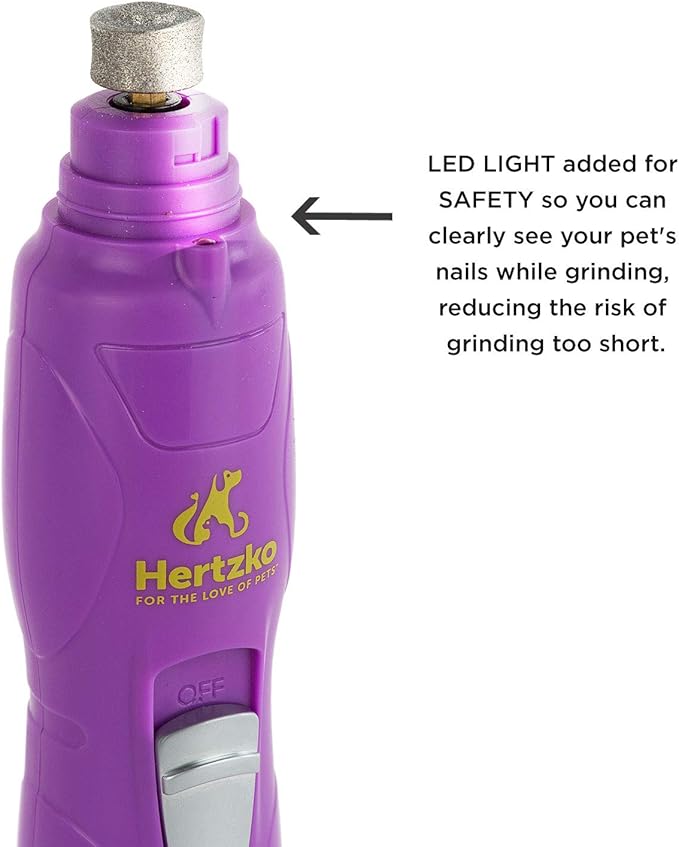 Hertzko Pet Nail Grooming Kit for Dogs and Cats - Electric Dog Nail Grinder with LED Upgrade - Pet Trimmers and Clippers - Cordless and Portable Trimmer and Clipper, 2 Grinder Bits, USB Wire