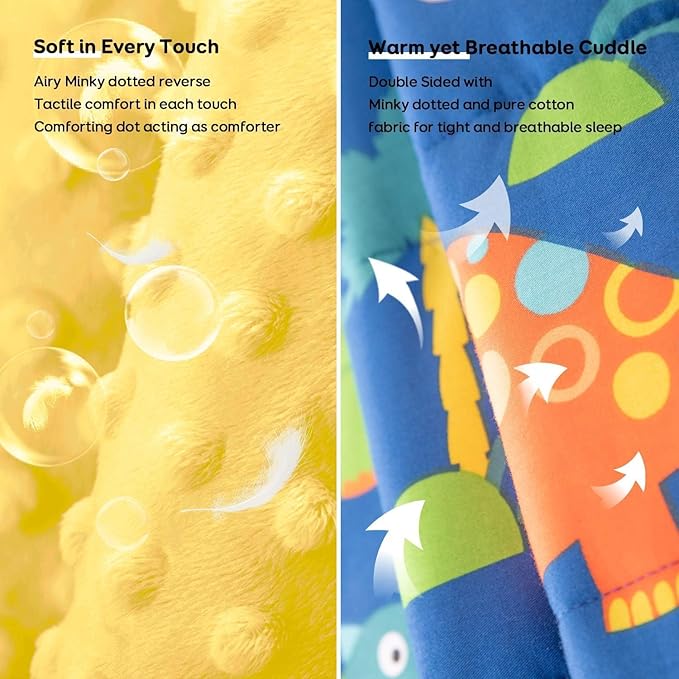 - Meticulously Designed for Added Comfort: The dual sided weighted blanket offers them tactile comfort to help them calm down and fall into sleep with the breathable cotton face keeping your sweating little one dry and comfortable while the super soft minky dotted and skin-friendly reverse endowing extra sense of security. Suitable for all-season use