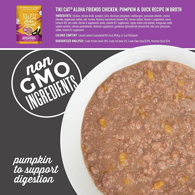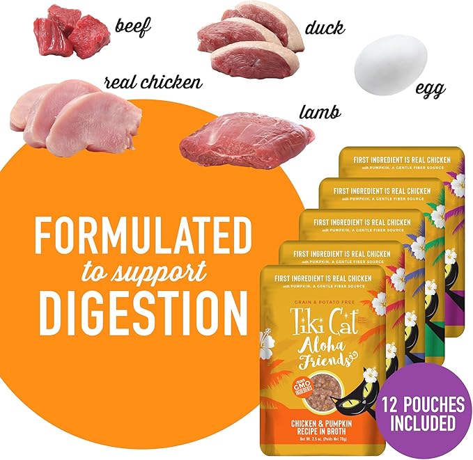 Tiki Cat Aloha Friends Variety Pack, Meaty Flavors Mixed with Pumpkin, Wet, High-Protein & High-Moisture Cat Food, For All Life Stages, 2.5 oz. Pouch (Pack of 12)