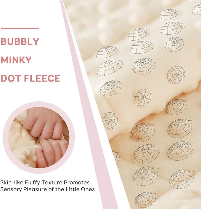 - Ultra-Soft Calming Blanket: 3D minky dot fleece blanket simulates mom’s hug to calm them. Skin-like smooth minky stimulates them senses and trigger positive feelings.