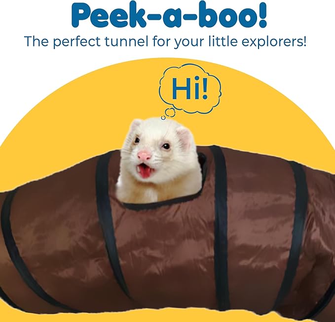 SunGrow Collapsible Tunnel for Ferret, 47.2" x 9.8" Lightweight Polyester with Steel Frame Tube,Includes Carrying Case, Ferret Accessories and Supplies, Brown and Black
