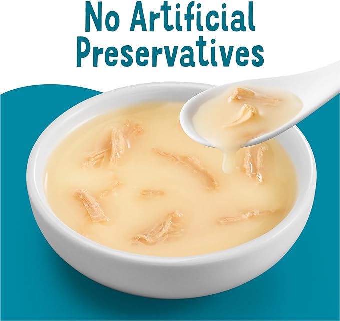 - Tender lil’ bits with real chicken in a delicious, dreamy cat food broth and made with no artificial preservatives