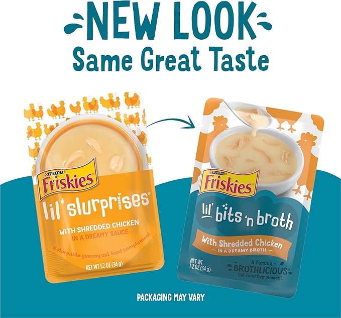 Purina Friskies Lickable Cat Treats Bits ‘n Broth With Shredded Chicken in a Dreamy Broth - (Pack of 16) 1.2 oz. Pouches
