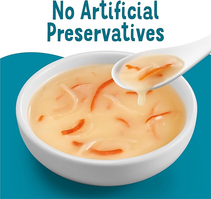 - Tender lil’ bits with real surimi whitefish in a delicious, dreamy cat food broth and made with no artificial preservatives