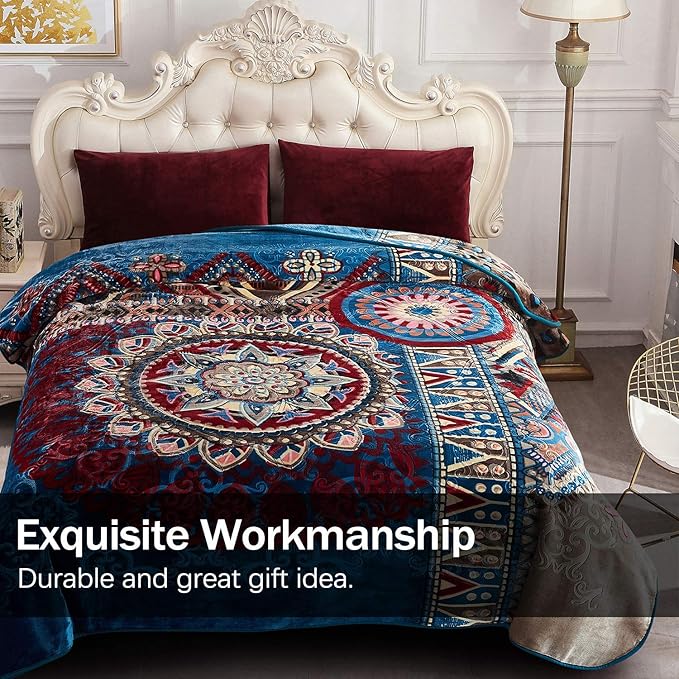 JML Fleece Blanket King Size, Korean Mink Blanket 85 x 95 Inches- 9 Lbs, Single Ply, Soft, Warm, Thick Raschel Printed for Autumn, Winter, Bed, Home