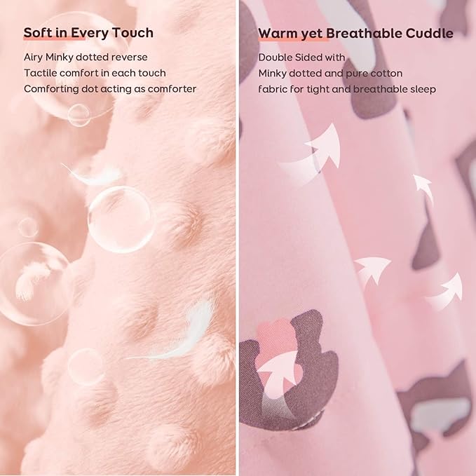 Uttermara Weighted Blanket 3 lbs, Ultra Cozy Minky Fleece and Cotton Sided with Cartoon Patterns, Reversible Heavy Blanket Great for Sleeping, 36x48 inches, Pink Leopard
