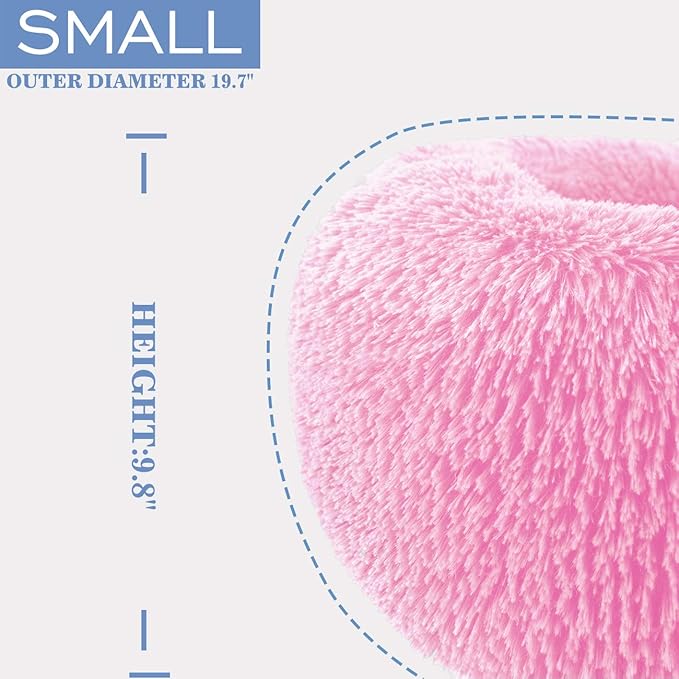 Round Donut Cat and Dog Cushion Bed, Pet Bed for Cats or Small Dogs, Anti-Slip & Water-Resistant Bottom, Super Soft Durable Fabric Pet Beds, Washable Luxury Cat & Dog Bed Hot Pink 19.7'