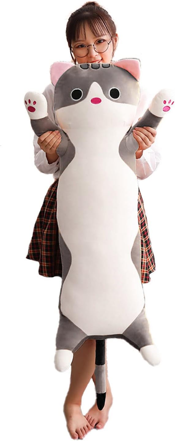 - Cat stuffed animal long pillows are carefully sewed, exquisite workmanship, perfect gifts for Christmas, children's birthday, Valentine's Day. You can choose this cute kitten plush stuffed animal toy to express your concern for your lover, child or friend.