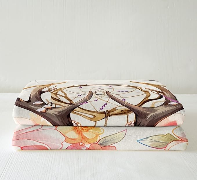 Deer Skull Fleece Throw Blanket for Girls Women Boho Dreamcatcher Floral Blanket Bohemian Dream Catcher Animal Skeleton Sherpa Blanket for Couch Sofa Bed Soft Arrow Fuzzy BlanketThrow 50"x60"