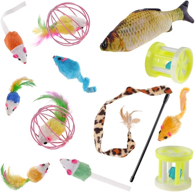 - Super Value Sets: 26 Pcs kitten toys, including fish, cat teaser wand, fluffy mouse, balls and variety colorful balls and bells