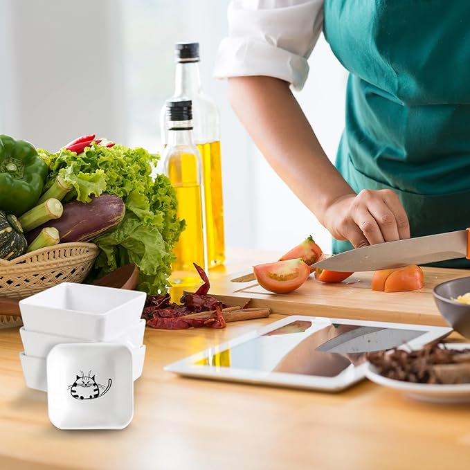 BigNoseDeer Super Cute Cat Ceramic Sauce Dish,Mini Side Seasoning Dish,Condiment Dishes,Sushi Soy Dipping Bowl,Snack Serving Dishes,Meow Porcelain Small Saucer Set(Set of 6)
