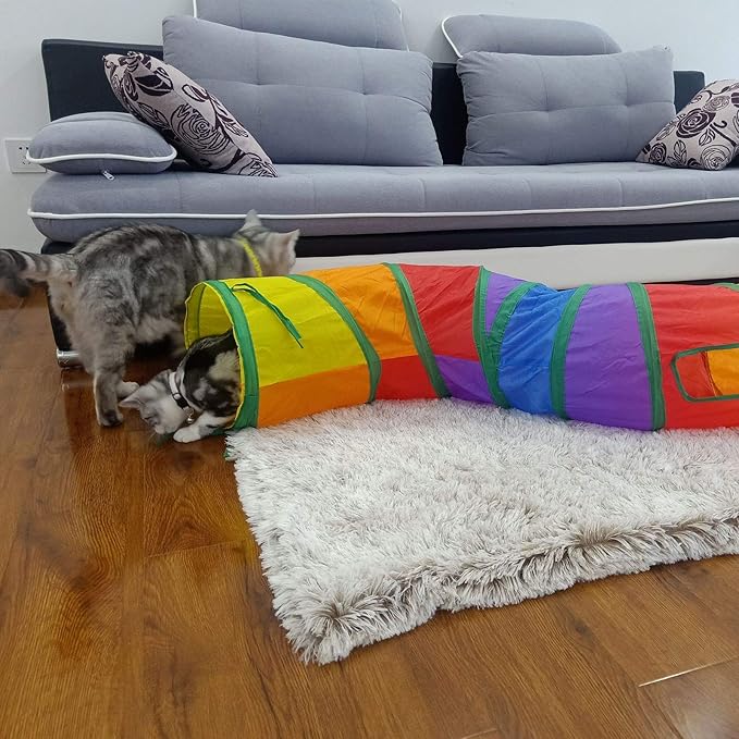 PetLike S Way Cat Tunnel Collapsible Pop-up Pet Tube Hideaway Play Toy with Ball (S-Way, Rainbow)
