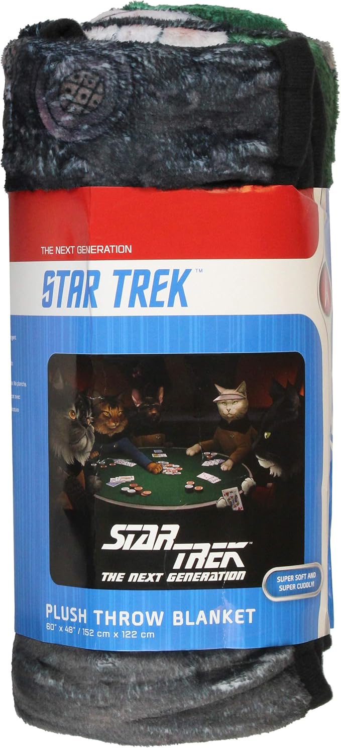 - UNIQUE STAR TREK TNG DESIGN - With Star Trek, there is an amazing amount of products out there, so we wanted to create a cool throw blanket with an awesome design! Hopefully, the Trekkies approve! The Minky plush blanket features a design of 5 Star Trek Cat characters sitting around a gaming table playing cards! If you look closely and are a real fan of TNG, you'll be able to recognize which Star Trek character the cats are designed after!