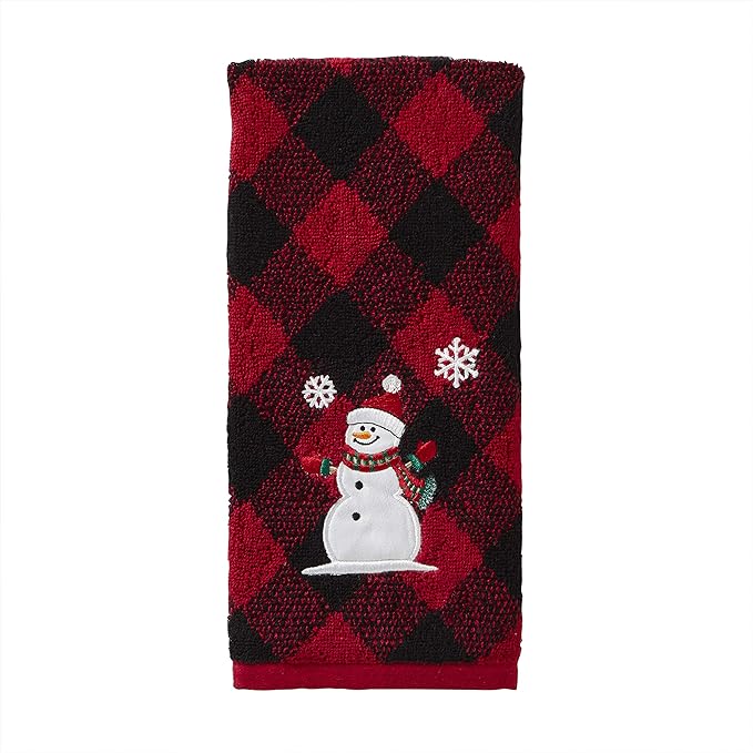 SKL Home Christmas/Winter Snowman Hand Towel 2pc Set for Bath/Kitchen/Bar & Gift, Red/Black