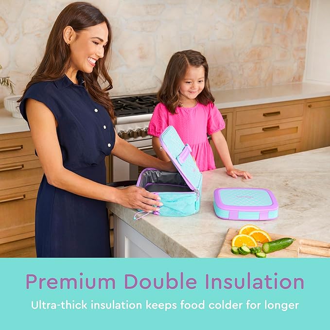 Bentgo Kids Lunch Bag - Durable, Double-Insulated Lunch Bag for Kids 3+; Holds Lunch Box, Water Bottle, & Snacks; Easy-Clean Water-Resistant Fabric & Multiple Zippered Pockets (Mermaid)