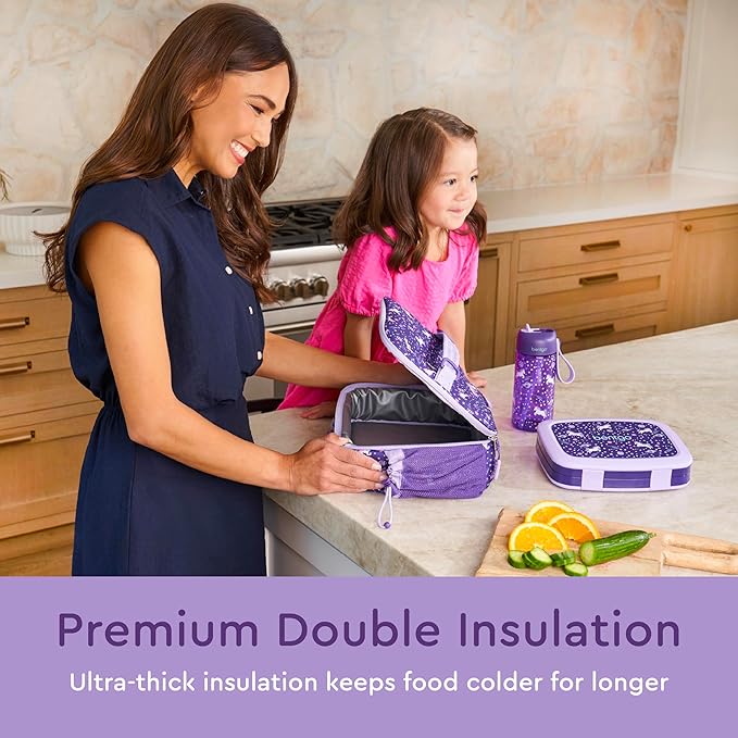 - #1 Lunch Bag Brand: Designed with premium materials, detailed finishes, and ultra-thick, double insulation that keeps your child’s meals fresher for longer while on the go. Bentgo Kids Lunch Bag is sized to transport both meals and snacks between school and activities for Ages 3+. Plus, our industry-leading 2-year manufacturer’s warranty protects your purchase for long-lasting use.