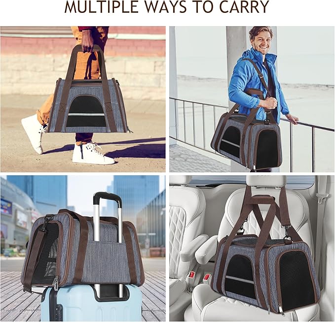- [Lightweight and foldable] - The pet carrier only 2 lb weight, comes with an adjustable shoulder strap for easy hands-free carrying and can be folded into the suitcase for easy carrying and storage when you are not using it. Top and side zipper openings that make it easy to get in and out while keeping the shape.