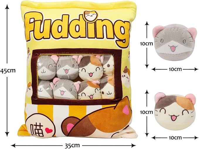 - 【Adorable Pillow with 8 Little Cat Dolls】There are 8 small stuffed cat plush dolls in each cute throw pillow. A bag of soft stuffed toys, so cute! Open the zipper, you will not only get a cute throw pillow, also you can get 8 lovely cat dolls. They are eye-catching for your kids and you can take them out as home decorations which will make your room more lively and cosy.
