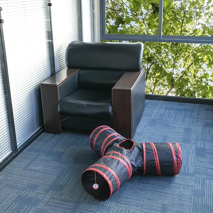 - 🐭3 Ways Play Tunnel :The design of three spacious passages and the design of bells on the side of the middle opening give your pet several play options. It is an indoor toy that your pet deserves.