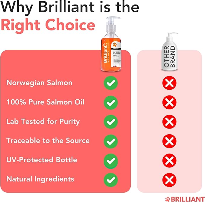 - Pets love the taste, pet parents love the results – whether raw fed or kibble, pets love the taste of Brilliant Salmon Oil. Simply pump our liquid on to your pet’s meal, no need for capsules!