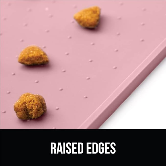 GORILLA GRIP 100% Waterproof Raised Edge BPA Free Silicone Pet Feeding Mat, Dog Cat Food Mats Contain Spills Protects Floors, Placemats for Cats and Dogs Water Bowl, Pets Accessories 23x15 Pink