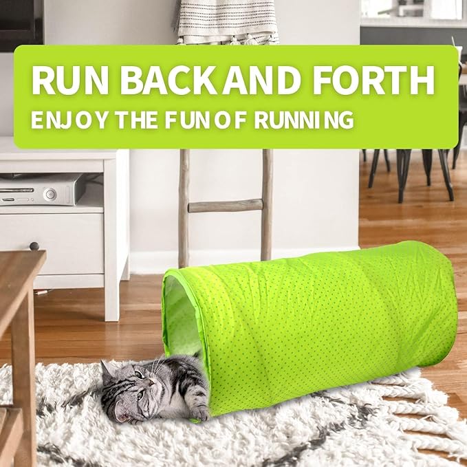 - BEST WAYS TO PLAY:With an interior diameter of 10” and length of 20”, the cat tunnel provides quite a generous space for your small and medium-sized cats.The shipped color is random (orange/green/blue) and only 1 piece tent per order