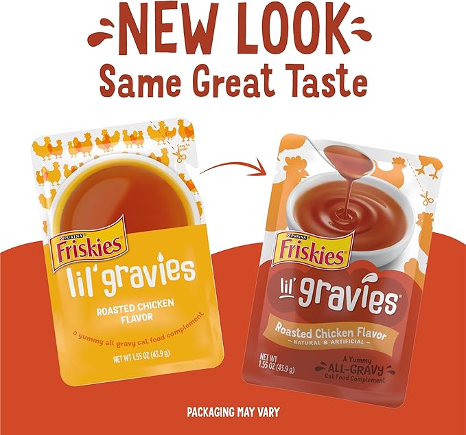 Purina Friskies Lil' Gravies Roasted Chicken Flavor Cat Food Lickable Cat Treats - (Pack of 16) 1.55 oz. Pouches