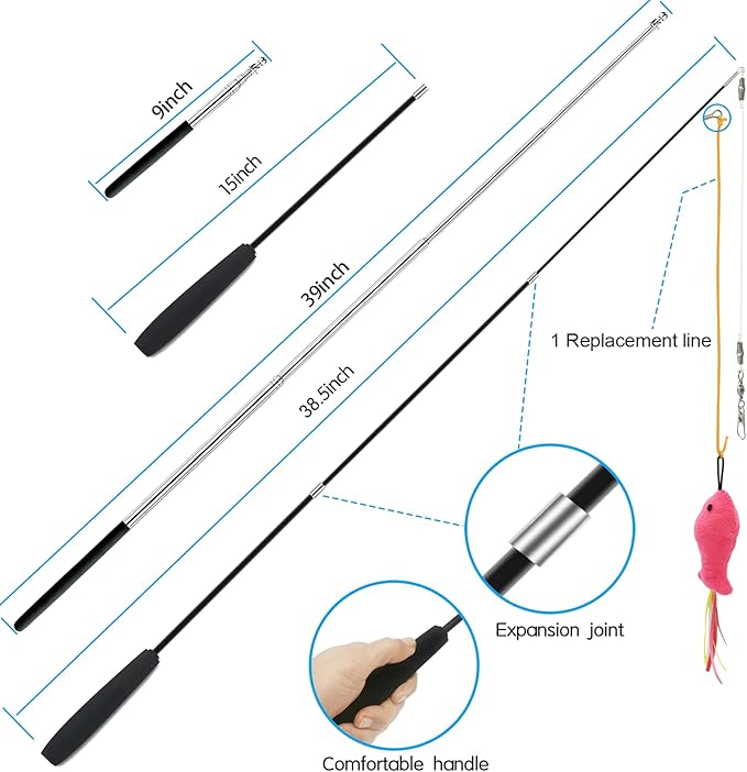 - 【Enhance Feelings with Cats】:Use cat fishing pole toy to interact with cats to stimulate their dabbling nature and promote the cat’s feelings for the owner
