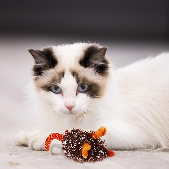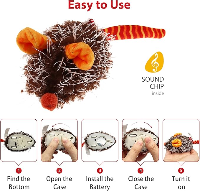 - Squeaky Mouse Sound: The kitten toys for indoor cats make a realistic mouse sound chip when batted as the toys for cats move, stimulating your cat's hunting instincts to chase and providing an interactive and engaging play experience.
