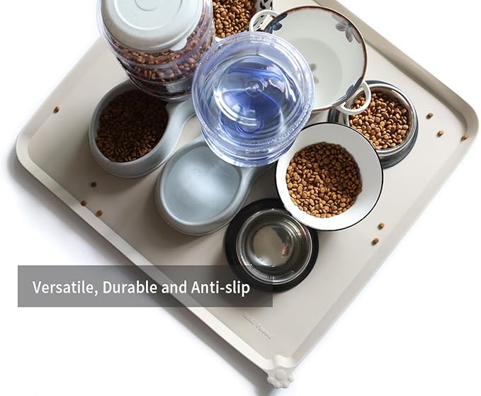 Hoki Found XX-Large Silicone Pet Food Mats Tray - Non Slip Pet Dog Cat Bowl Mats Placemat - Dog Pet Cat Feeding Mat - Waterproof Dog Cat Food Mats -Pet Water Mats for Carpet -Cream Brown