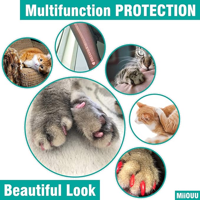 - Safe and Comfortable: MiiOUU Cat Nail Caps are made from premium natural vinyl resin, soft and comfortable to wear. The cat nail caps have passed Europe SGS environmental certification.