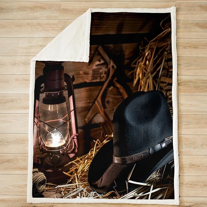Western Cowboy Sherpa Blanket Wild West Themed Cowboy Plush Blanket Retro Cowboy Style Fleece Throw Blanket for Sofa Couch Bed Grunge Design Fuzzy Blanket Ultra Soft Room Decor Queen 90x90 Inch