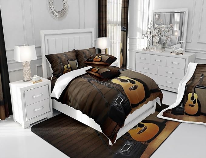 Guitar Fleece Throw Blanket Music Themed Guitar Plush Blanket for Sofa Couch Bed Guitar Instruments Print Sherpa Blanket Musical Pattern Microphone Fuzzy Blanket Room Decor Throw 50x60 Inch