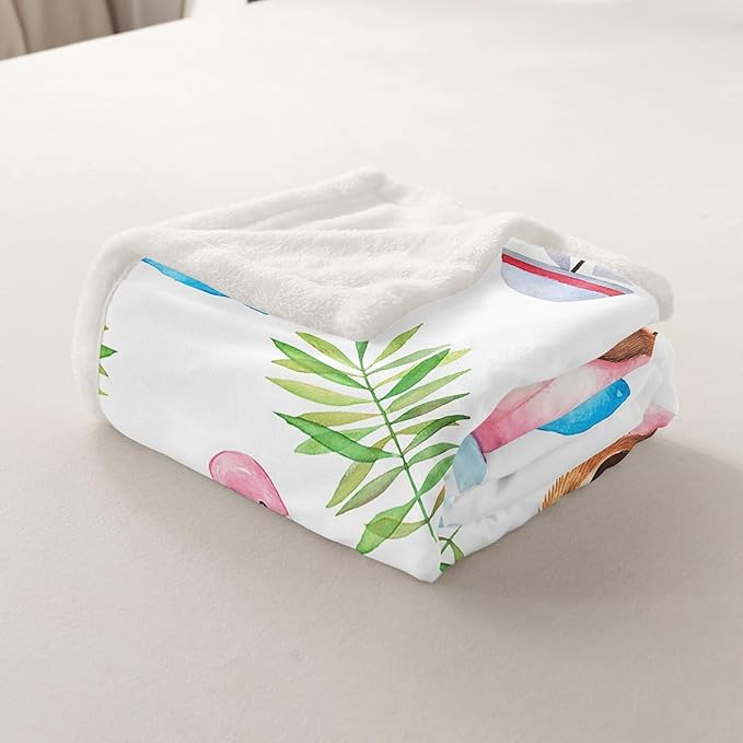 Tropical Animal Plush Blanket Cute Sloth Fleece Throw Blanket for Sofa Couch Bed Flamingo Float Sherpa Blanket Cartoon Sloth Hawaiian Summer Vacation Fuzzy Blanket Room Decor Twin 60x80 Inch