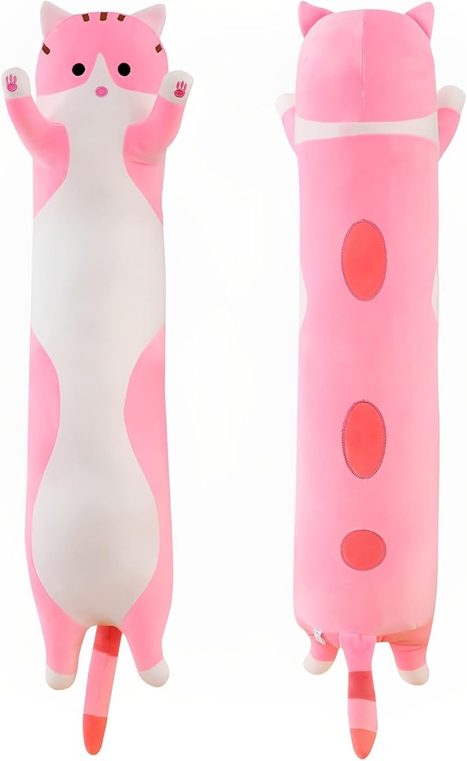 shangman Lovely Plush Cat Doll Cute Cartoon Soft Stuffed Kitten Long Throw Sleeping Pillow Doll Toy Gift for Kids Girlfriend Multiple Size (Pink,50cm/19.6in)