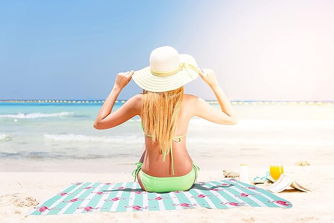 - 【QUICK DRY & SAND FREE】 Made from high-quality microfiber material, this Flamingo beach towel is quick-drying and highly absorbent. It's ideal for use after showering, swimming, or surfing, as it rapidly absorbs water from your body. Furthermore, it effectively prevents sand from sticking to its surface, making it easy to shake off.