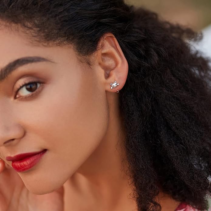 - ♥Hypoallergenic Earrings: The cat earrings are made of 925 sterling silver, 100% nickel-free and lead-free, effectively hypoallergenic, it is safe for your sensitive ear. You can comfortably wear the sterling silver cat huggie hoop earrings long time