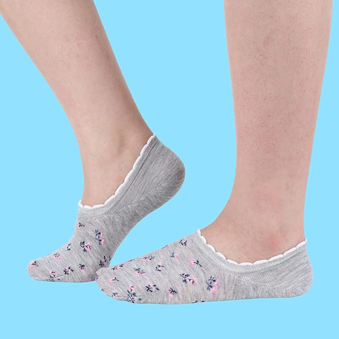 • 【Size & Package】 Our cute low cut socks fit US women shoe sizes 5-8, great for teen girls and women. You will get a package that includes 5 packs non-slip no show socks in patterns. Socks should never bore you!